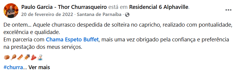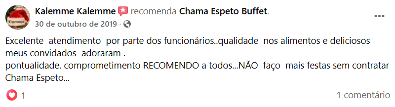 Com toda a estrutura a Chama Espeto organiza a sua festa, seja casamento, aniversário, chá de bebe e confraternização em geral. Dispomos de uma equipe de churrasqueiros, copeiras e garçons devidamente treinados e experientes para tornar seu evento um sucesso.